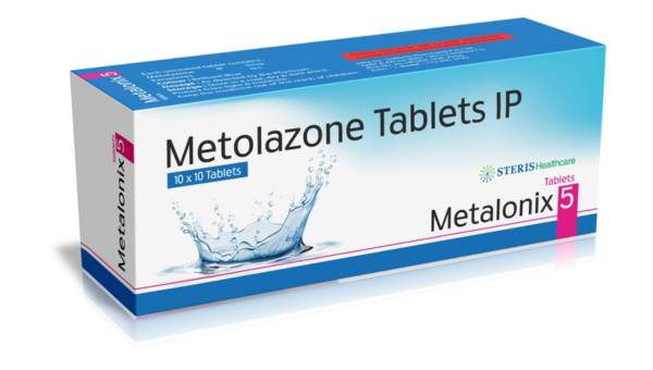 METALONIX 5 is a prescription diuretic medication containing Metolazone 5 mg, widely used in the management of hypertension and fluid retention (edema). Metolazone belongs to the thiazide-like class of diuretics and works by inhibiting sodium and chloride reabsorption in the distal convoluted tubules of the kidney, leading to increased urine output and reduced fluid overload.