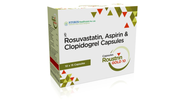 ROUSTRIN GOLD 10, containing Rosuvastatin (10 mg), Clopidogrel (75 mg), and Aspirin (75 mg), is a comprehensive and effective therapy for managing cardiovascular risk and supporting long-term heart health. By combining cholesterol-lowering action with powerful antiplatelet protection, it helps reduce the likelihood of heart attacks, strokes, and related complications. When used responsibly under medical supervision and combined with a heart-healthy lifestyle, ROUSTRIN GOLD 10 can play a vital role in maintaining cardiovascular stability and overall well-being. Always follow your healthcare provider’s advice to ensure safe and optimal treatment outcomes.