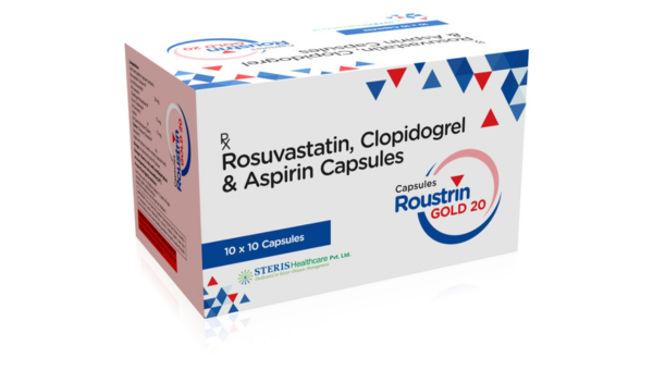 ROUSTRIN GOLD 20 (Rosuvastatin 20mg + Clopidogrel 75mg + Aspirin 75mg) is a comprehensive cardiovascular solution for high-risk patients. It effectively manages cholesterol, prevents dangerous blood clots, and reduces the risk of heart attacks and strokes.